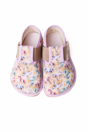 Bosonogi copati imajo dovolj prostora za prste tudi po višini. Zapirajo se z ježkom. So zelo mehki in imajo izjemno prožen tanek podplat. Odlična prilagodljivost, lep preprost dizajn in izdelava. Zahvaljujoč vsem tem lastnostim se otroci v njih počutijo svobodne in neomejene.