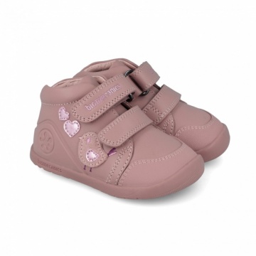 Biomecanics so kakovostni otroški čevlji, zasnovani z mislijo na zdravo rast in naravno gibanje stopala. Usnjen zgornji del v roza barvi s simpatičnim potiskom za igriv videz. Za enostavno obuvanje in popolno prileganje poskrbita dva ježka, ki ju otrok lahko upravlja tudi sam. Odstranljiv vložek je zasnovan tako, da učinkovito odvaja vlago in preprečuje neprijetne vonjave, zato so stopala vedno suha in udobna. Fleksibilen podplat podpira pravilen razvoj stopala, hkrati pa zagotavlja stabilnost in udobje pri vsakodnevnih dejavnostih.