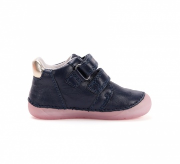 Otroški usnjeni čevlji s širokim prednjim delom, kar zagotavlja dovolj prostora za prste. Čevlji imajo zelo prožen nedrseč podplat. Nova tehnologija šivanja zagotavlja fleksibilnost in dolgo življenjsko dobo čevlja.