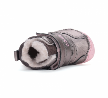 Otroški usnjeni podloženi čevlji s širokim prednjim delom, kar zagotavlja dovolj prostora za prste. Čevlji imajo zelo prožen nedrseč podplat in odstranljiv krznen vložek. Podplat čevlja D.D. Step barefoot se prilagaja obliki stopala in zagotavlja maksimalno zaznavanje podlage. Čevelj omogoča, da so pri hoji vključene vse mišice, kite in kosti stopala, tako kot pri bosi hoji, in tako prispeva k zdravemu razvoju stopala.