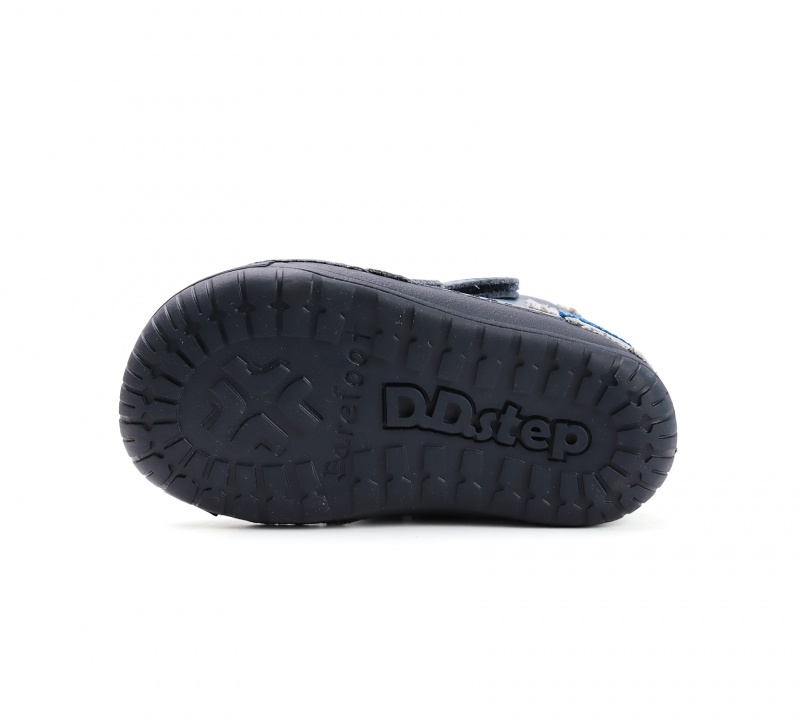 Otroški usnjeni podloženi čevlji s širokim prednjim delom, kar zagotavlja dovolj prostora za prste. Čevlji imajo zelo prožen nedrseč podplat in odstranljiv krznen vložek. Podplat čevlja D.D. Step barefoot se prilagaja obliki stopala in zagotavlja maksimalno zaznavanje podlage. Čevelj omogoča, da so pri hoji vključene vse mišice, kite in kosti stopala, tako kot pri bosi hoji, in tako prispeva k zdravemu razvoju stopala.