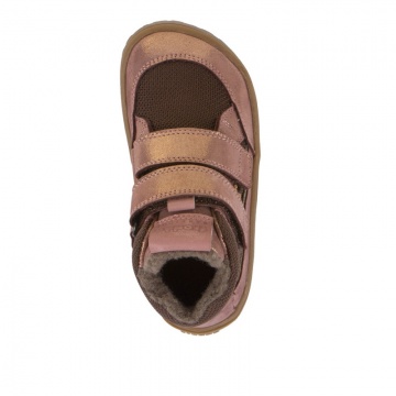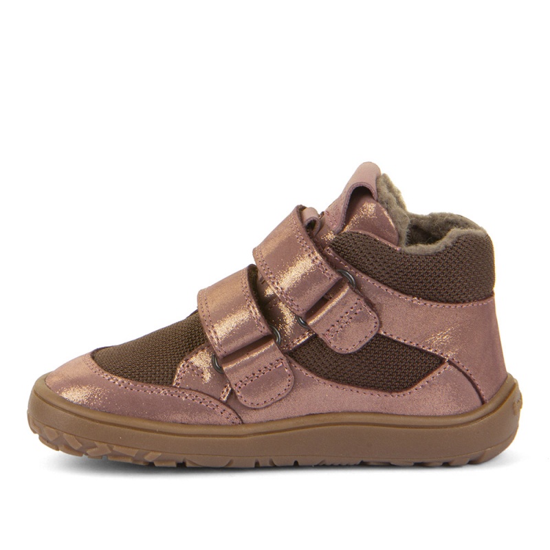 Bosonogi gležnarji zagotavljajo vrhunsko udobje in svobodo gibanja. Izjemno lahki, tanki, široki in zračni gležnarji imajo gumijast podplat in jih odlikuje velika prilagodljivost in izjemna mehkoba. Narejene so iz hidrovelurja, ki odbija vlago in ohranja stopala suha. Sprednji del omogoča neovirano in prosto gibanje prstov ter razvoj stopal brez omejitev. Dva ježka pomagata uravnavati širino in olajšata nošenje. Gležnaji imajo podlogo in podplat iz naravne volne. V teh gležnjarjih otroci čutijo tla pod nogami.