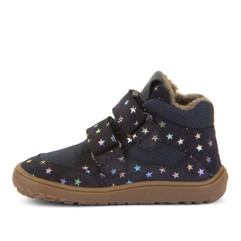 Bosonogi gležnarji zagotavljajo vrhunsko udobje in svobodo gibanja. Izjemno lahki, tanki, široki in zračni gležnarji imajo gumijast podplat in jih odlikuje velika prilagodljivost in izjemna mehkoba. Narejene so iz hidrovelurja, ki odbija vlago in ohranja stopala suha. Sprednji del omogoča neovirano in prosto gibanje prstov ter razvoj stopal brez omejitev. Dva ježka pomagata uravnavati širino in olajšata nošenje. Gležnaji imajo podlogo in podplat iz naravne volne. V teh gležnjarjih otroci čutijo tla pod nogami.