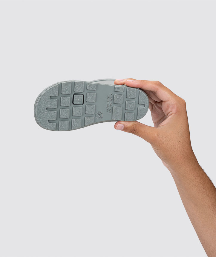 Enobarvni bosonogi gumijsti škornji. Protizrsen podplat je raven, tanek in prožen v vse smeri. Za udobno nošenje je notranjost škornja prekrita z bombažem. Bombažen vložek dobro vpija znoj in ko se noge potijo ga enostavno odstranite in pustite na zraku, da se posuši.