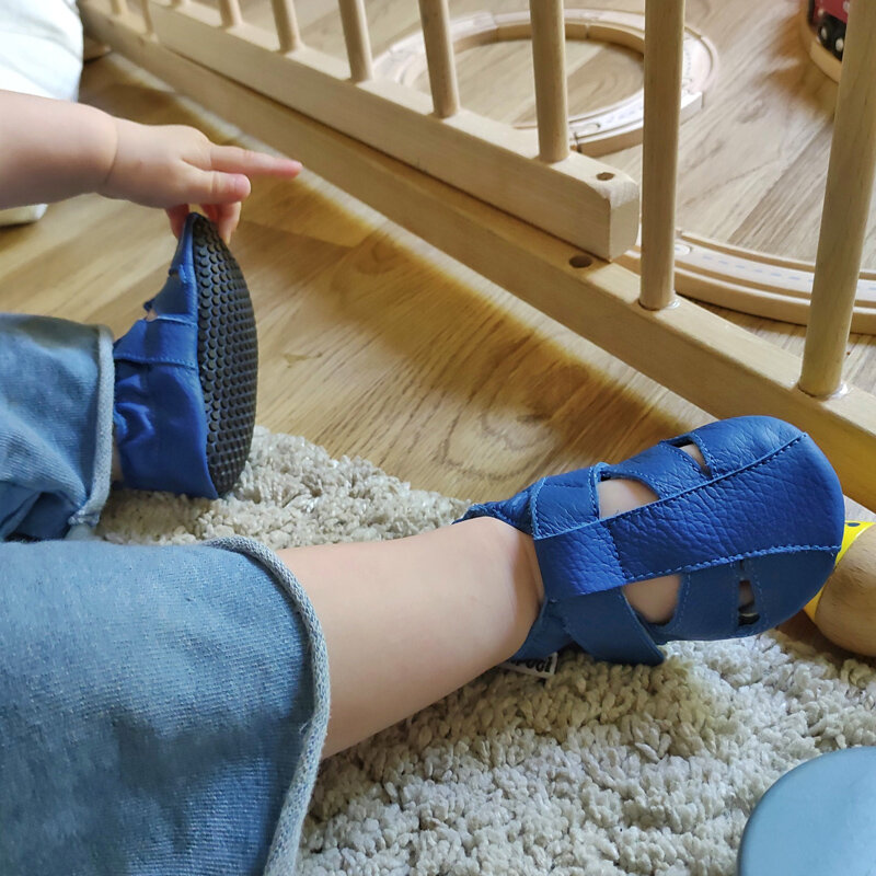 Podplat je izdelan iz treh slojev: med protizdrsnim podplatom z vzorcem satja in notranjim usnjenim vložkom je vložek debeline 3 mm, ki zagotavlja toplotno izolacijo in blaži udarce pri hoji in teku po trših površinah. Copatki imajo dovolj prostora za prosto gibanje prstov in naravni razvoj stopal.