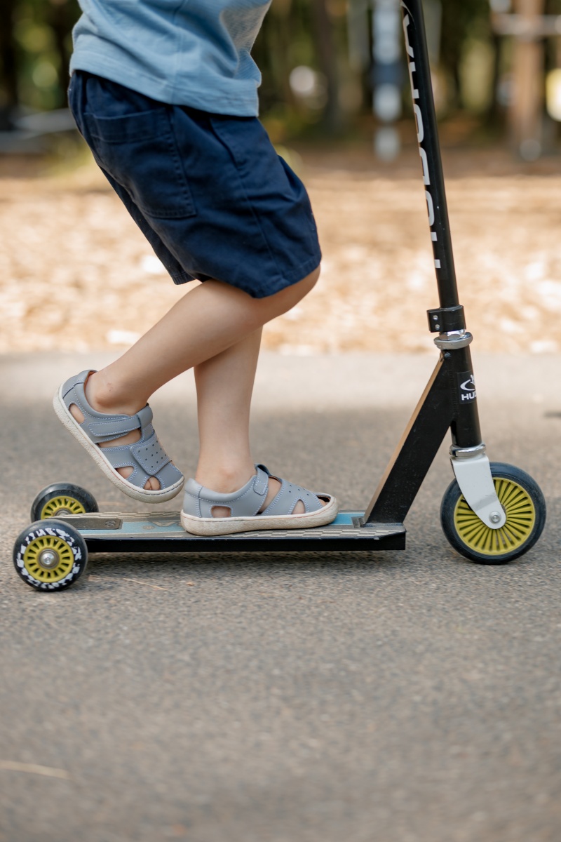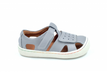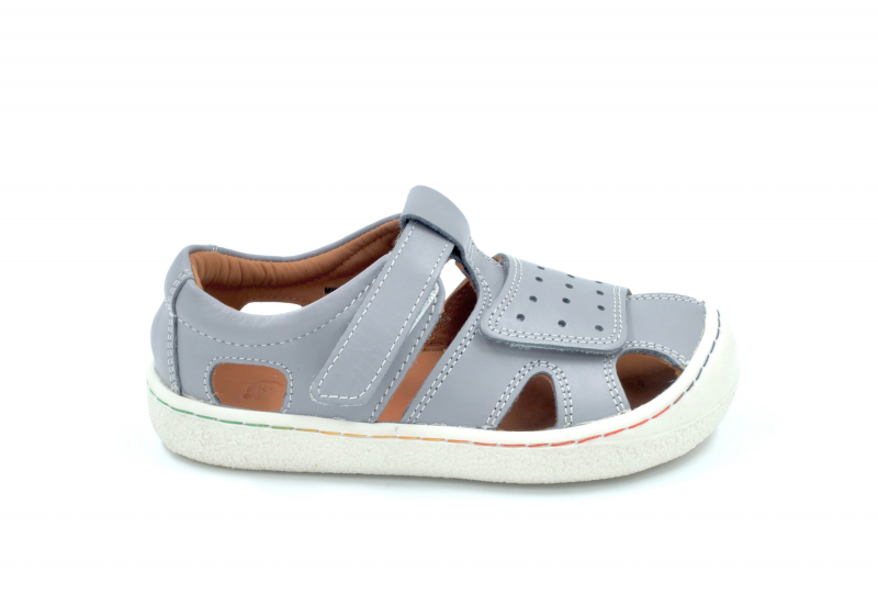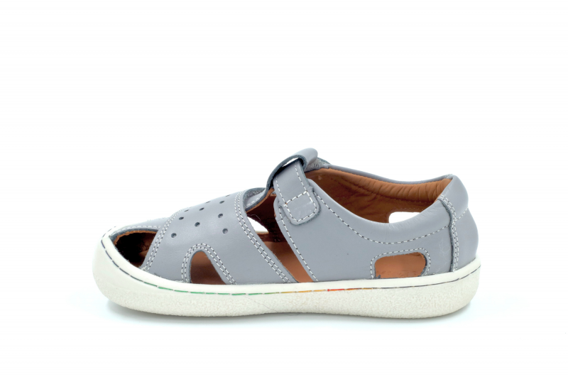 Širok predal za prste zagotavlja dovolj prostora za miganje in širjenje malih prstov, kar je ključnega pomena za zdrav razvoj stopal, medtem ko spredaj z gumo pokriti prsti povečujejo vzdržljivost in nudijo zaščito proti praskam. Zunanji podplat je narejen iz prožne gume s protizdrsnim vzorcem, ki zagotavlja varnost med igro. Sandali so izdelani iz visokokakovostnega naravnega usnja, ki zagotavlja vzdržljivost in zračnost za udobno celodnevno nošenje.