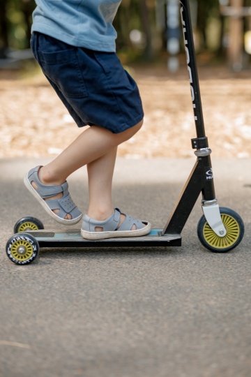 Pametna zasnova z zaprtimi prsti zagotavlja dodatno zaščito, mehke usnjene ježke okoli gležnja in prstov pa je mogoče natančno prilagoditi različnim oblikam stopal. Zračni in lahki sandali, ki udobno ostanejo na mestu tudi med najbolj aktivno igro. Kapica za prste ščiti pred obrabo, tako da sandali zdržijo dlje, ne glede na to, koliko dogodivščin preživijo.