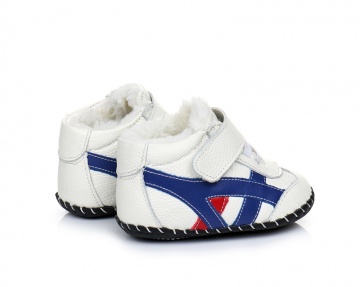 Topli usnjeni otroški čevlji z usnjenim podplatom. Na podplatu imajo dve gumijasti blazinici. Primerni so kot prvi čeveljčki za zunaj in noter. So mehki in popolnoma prilagodljivi. Škorenjčki omogočajo, da otrok čuti tla pod nogami in s tem naravno oblikuje in krepi stopala.