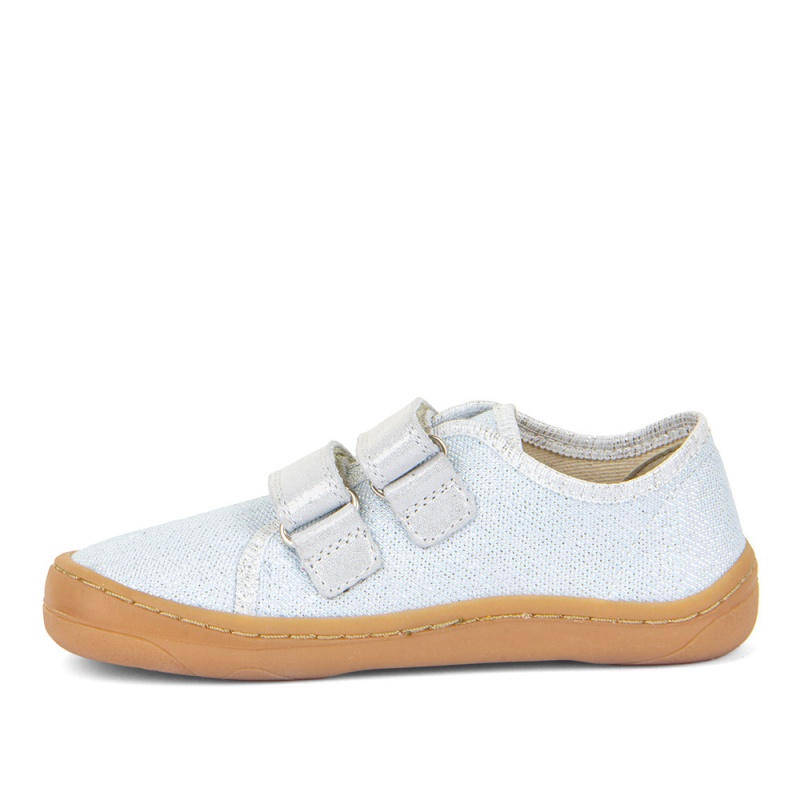 Froddo barefoot platneni čevlji ima zelo prožen gumijast podplat. Pri prstih imajo širši del, ki zagotavlja stabilnost stopala in podpira naraven razvoj. V notranjosti je naraven odstranljiv antibakterijski vložek. Primerni so kot copati ali superge za poletje, toplo pomlad in toplo jesen v suhem vremenu. Izdelani so iz EU certificiranih materialov.
