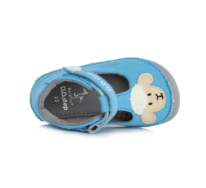 Otroški platneni čevlji s širokim prednjim delom, kar zagotavlja dovolj prostora za prste. Čevlji imajo zelo prožen nedrseč podplat. Nova tehnologija šivanja zagotavlja fleksibilnost in dolgo življenjsko dobo čevlja.