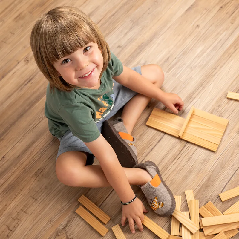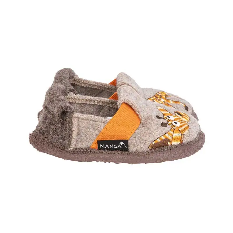 Nanga so volneni copati narejeni iz 100% naravnih materialov. Imajo mehek zelo tanek neoblikovan podplat, ki je prilagodljiv v vseh smereh. Narejen je iz lateksa, ki je prožen in preprečuje, da bi malčku zdrsnilo. Volna odlično uravnava temperaturo in odvaja vlago. Primerni so za doma ali v vrtcu.