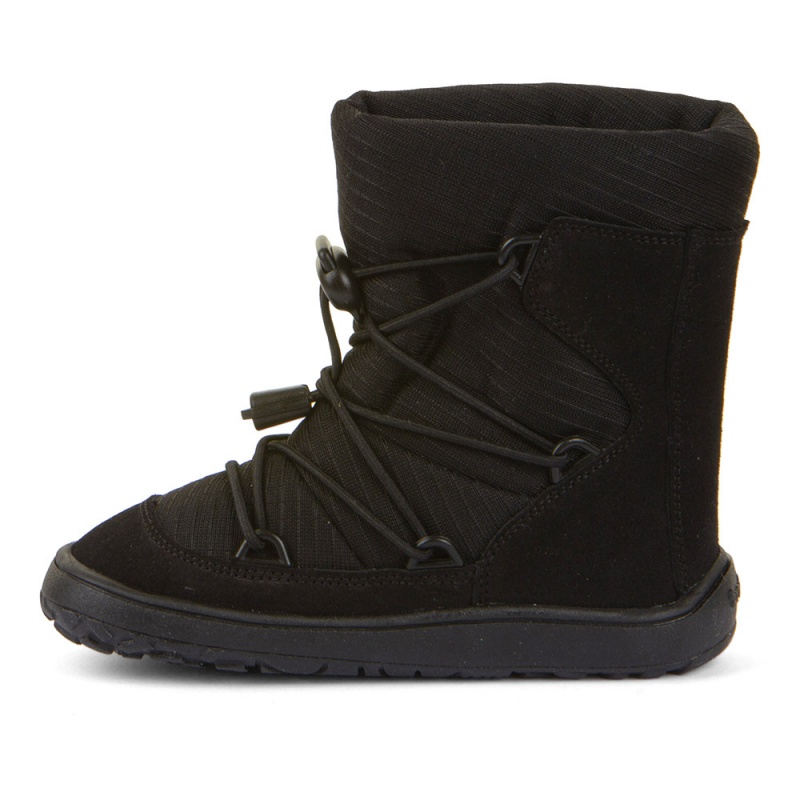 Froddo Barefoot Tex Track Wool Black s podlogo iz ovčje volne, topli in nepremočljivi zimski škornji. Zimski škornji Froddo Barefoot Tex Track Wool so izdelani iz okolju prijaznih visokokakovostnih materialov. Škornji imajo toplo podlogo iz ovčje volne in nepremočljivo membrano ter termo vložek, prekrit z ovčjo volno. Zimski škornji imajo Extra Grip podplat z globljim vzorcem, ki je zelo primeren za snežne razmere. Z elastikami lahko škornje zategnete po želji čez gležnje, zaradi česar so primerni za različne tipe stopal.