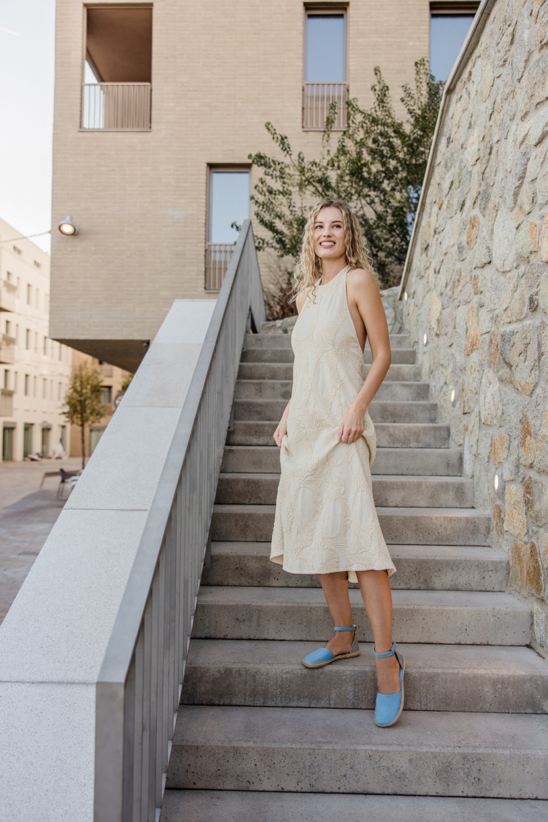 Lahke in zračne barefoot espadrile Festa so idealne za pomladne in poletne dni zaradi zračnega bombažnega platna in ekološke rafije. Posebnost espadril Festa je zanimiv rob in nastavljiv trak, ki zagotavlja varno in udobno prileganje. Ta trak je enostavno odstranljiv in zamenljiv s trakom, kar vam omogoča hitro in enostavno spreminjanje videza vaše obutve. Trak je del paketa.